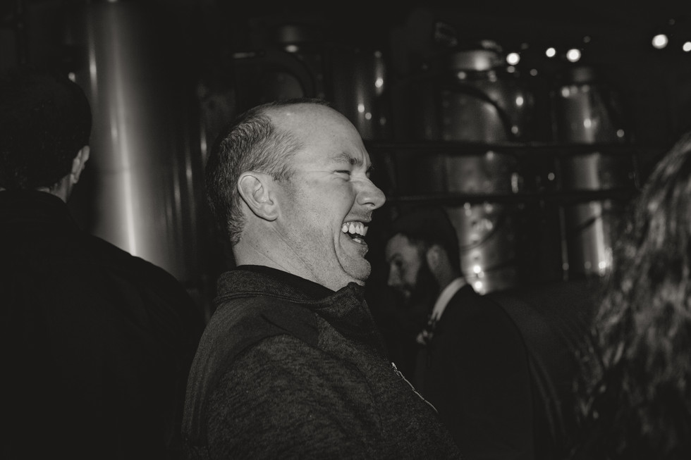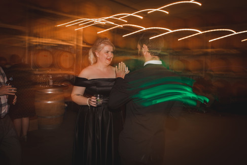 Tucked away in a dark barrel room of Piggs Peake Winery , the pair happily shared good food, good drinks, good laughs and of course good company as they laughed together through their special night.