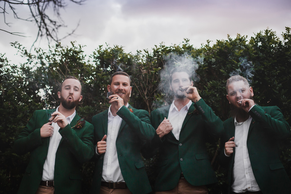 A simple ceremony under the trees with fam + friends, followed by one complex kiss and that pretty much sums up this couple.